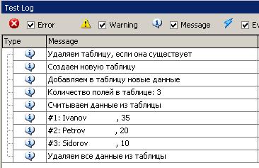 В качестве примера приведем функцию, которая подключается к файлу базы данных MS Access, выбирает данные из таблицы и выводит результат в лог TestComplete-а.