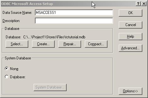 Щелкните правой кнопкой мыши на созданном псевдониме, выберите пункт меню ODBC Administrator, затем System DSN и добавьте файл tctutorial.mdb как показано на скриншотах ниже.