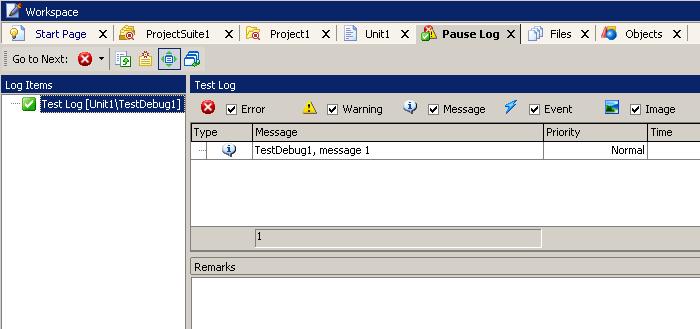 Log.Message(“TestDebug1, message 1”);