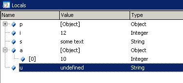 Теперь нажмите F5 и после того, как выполнение скрипта остановится на следующем брекпоинте, снова обратите внимание на вкладку Locals. Теперь мы видим, какое значение в данный момент имеют все переменные кроме переменной u, которая так и не была инициализирована:
