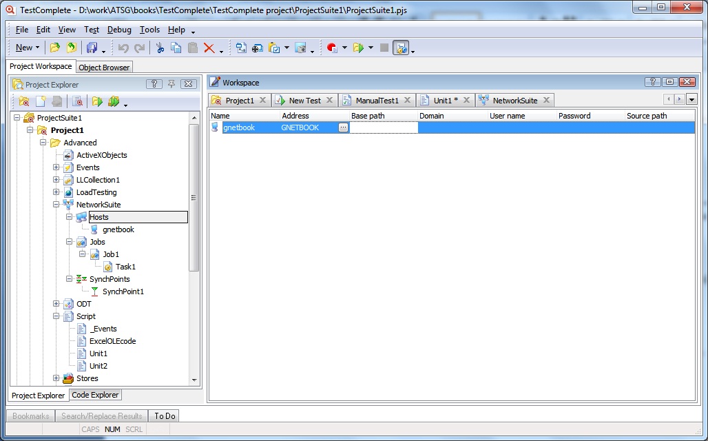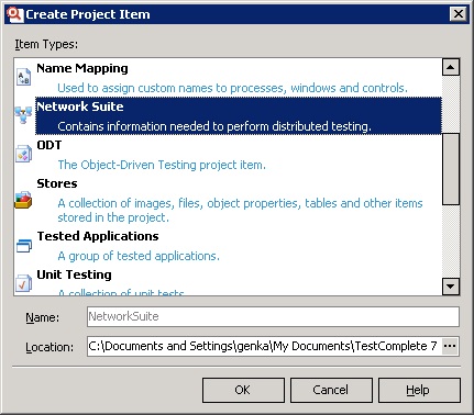 Чтобы иметь возможность запускать скрипты на нескольких машинах, на каждой из них должен быть установлен либо TestComplete, либо TestExecute. Кроме того, в каждом проекте, который будет запускаться на slave-компьютере, должен быть добавлен элемент NetworkSuite. Чтобы добавить его, необходимо щелкнуть правой кнопкой мыши на имени проекта в дереве Project Explorer, выбрать пункт меню Add – New Item, и в открывшемся диалоговом окне выбрать Network Suite.