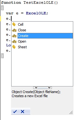 и она должна создать новый файл, записать текст «New text» в ячейку C3, а затем считать записанное значение и вывести в лог. Причем в редакторе TestComplete мы будем видеть список доступных свойств и методов этого объекта.
