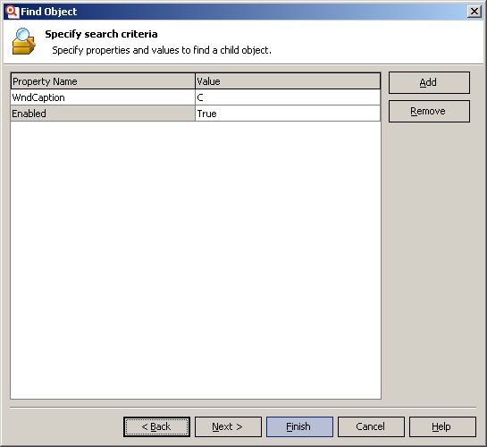 В следующем окне введем свойства и значения, по которым будем искать элемент