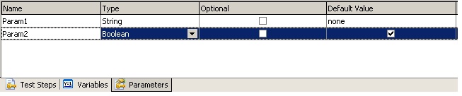 Как и в обычных тестах, в KD Test-ах могут использоваться переменные и параметры. Для них предназначены соответственно вкладки Variables и Parameters на панели Keyword Driven Test-ов.