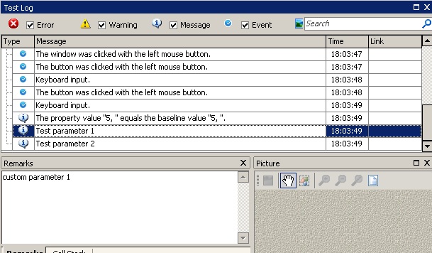 Log.Message(“Test parameter 1”, Param1);
