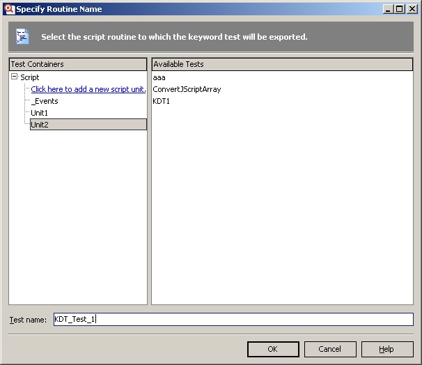 После чего в появившемся окне Specify Routine Name необходимо выбрать существующий (или добавить новый) модуль и ввести имя функции, в которую будет сконвертирован KD Test.
