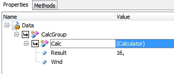 Обратите внимание, что как только мы связали объект Calc с классом Calculator, мы сразу видим его свойство Result, которое мы определили для класса. Дополнительно определим еще одно свойство Wnd. С помощью этого свойства мы будем обращаться к главному окну Калькулятора.