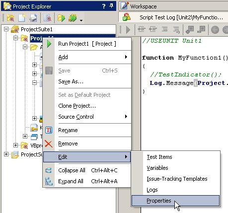 Теперь поговорим о наиболее интересных настройках проекта. Чтобы увидеть настройки проекта в TestComplete, необходимо щелкнуть правой кнопкой мыши на имени проекта в дереве слева и выбрать пункт меню Edit – Properties.
