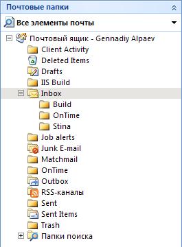 В качестве примера приведем приложение MS Outlook. В левой части окна Outlook есть дерево с папками.