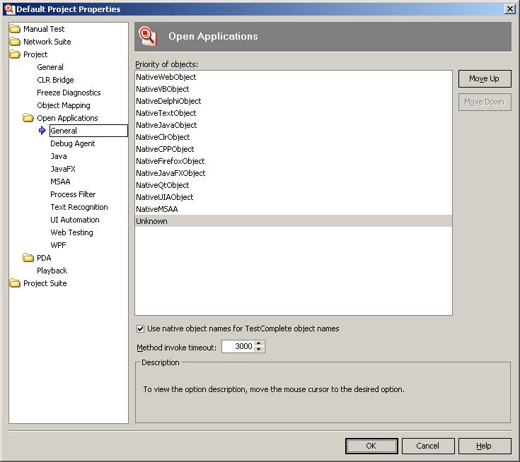 Use native objects names for TestComplete objects names – если эта опция включена, TestComplete генерирует имена объектов, используя их внутренние имена, т.е. имена, которые используются в самом приложении. Иначе TestComplete будет генерировать имена по имени класса и индексу элемента. Рекомендуется оставить эту опцию включенной.