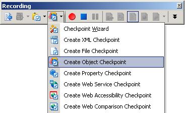 Самый простой способ создания Object Checkpoint – это начать запись скрипта и затем на панели Recording выбрать пункт Add checkpoint from list – Create object checkpoint.