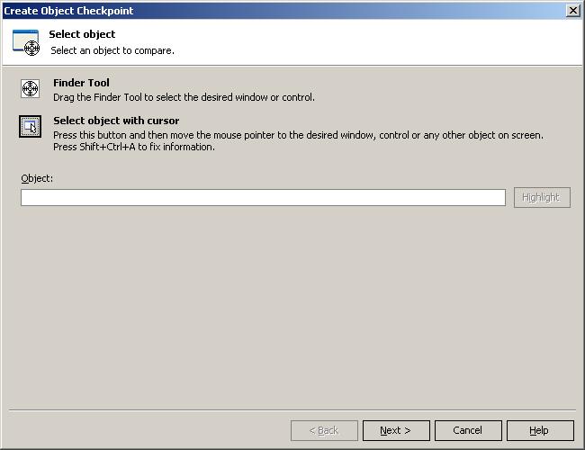 Теперь необходимо выбрать объект, для которого мы собираемся делать проверку. Для этого надо либо перетянуть картинку с изображением мишени (Finder Tool) на проверяемый объект, либо выбрать Select object with cursor, после чего установить указатель мыши над объектом и нажать Ctrl-Shift-A. При этом объект будет подсвечен красным контуром, а его полный путь появится в строке Object. При этом также может появиться окно Map object, где будет предложено сохранить объект в NameMapping. Если вы не используете NameMapping, просто нажмите Cancel.