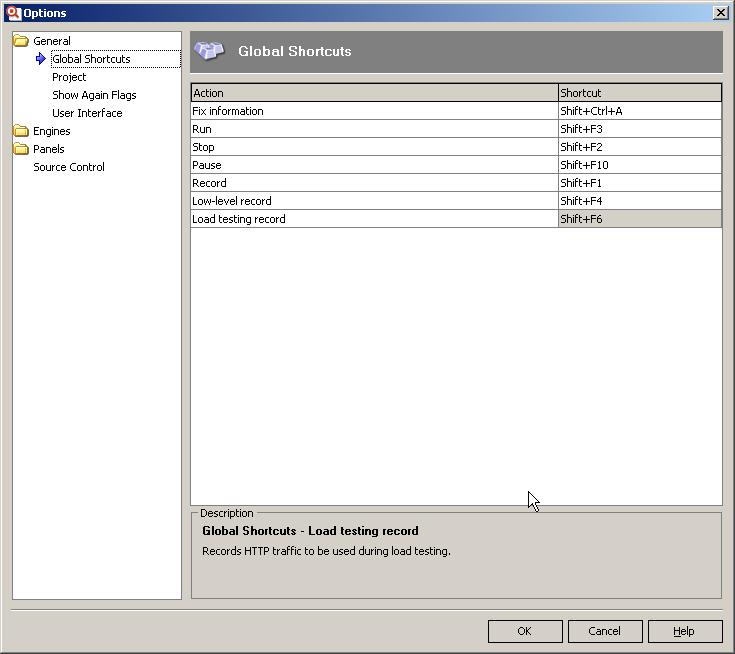Кроме этих комбинаций клавиш можно также настроить горячие клавиши (т.е. глобальные клавиатурные сочетания, которые будут работать даже тогда, когда окно TestComplete неактивно) для некоторых действий. Сделать это можно в меню Tools – Option – General – Global Shortcuts.