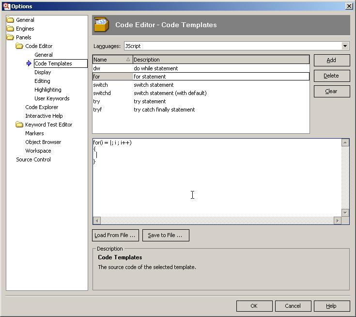 Если вы пишете много кода и часто пользуетесь определенными конструкциями (например, циклы, условия и т.п.), то вам необязательно каждый раз вводить их все вручную или копировать откуда-то. Для этого есть Шаблоны кода (Code Templates).