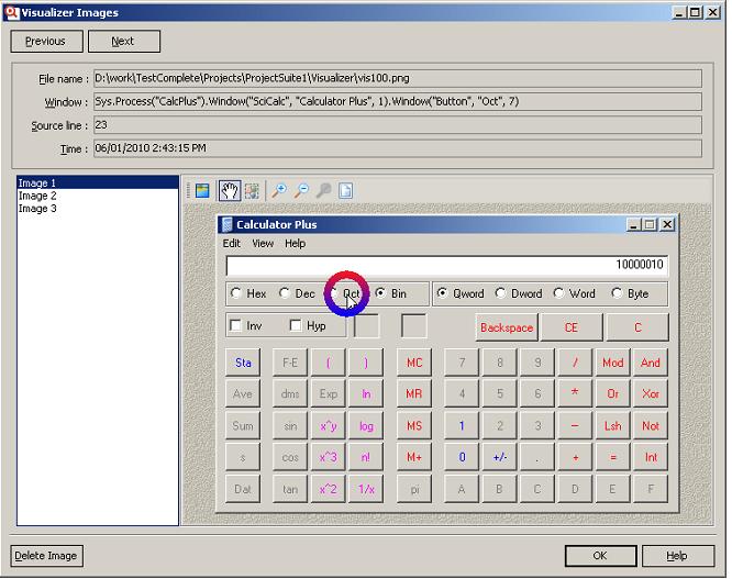 Визуализатор (Visualizer) – это простое и удобное средство для сопоставления кода скриптов с соответствующими экранными объектами. С помощью Визуализатора вы можете всегда посмотреть на скриншот окна в тот момент, когда выполнялось то или иное действие (нажатие кнопки, ввод текста, в общем любого действия, связанного с работой с экранными объектами). При этом объект, с которым работал скрипт в определенный момент, будет обведен на скриншоте, что упрощает поиск элементов управления на снимке экрана.