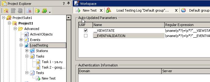 - Если вы тестируете приложение, написанное на ASP.NET, то некоторые элементы управления могут иметь параметры, которые постоянно меняются, а значит ответы от сервера при записи и воспроизведении будут всегда отличаться. Чтобы решить эту проблему, дважды щелкните на элементе LoadTesting в дереве проектов и добавьте эти параметры в список Auto-Updated Parameters