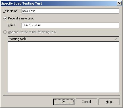 При этом появится окно Specify Load Testing Test, в котором мы введем имена для нагрузочного теста и имя новой задачи.